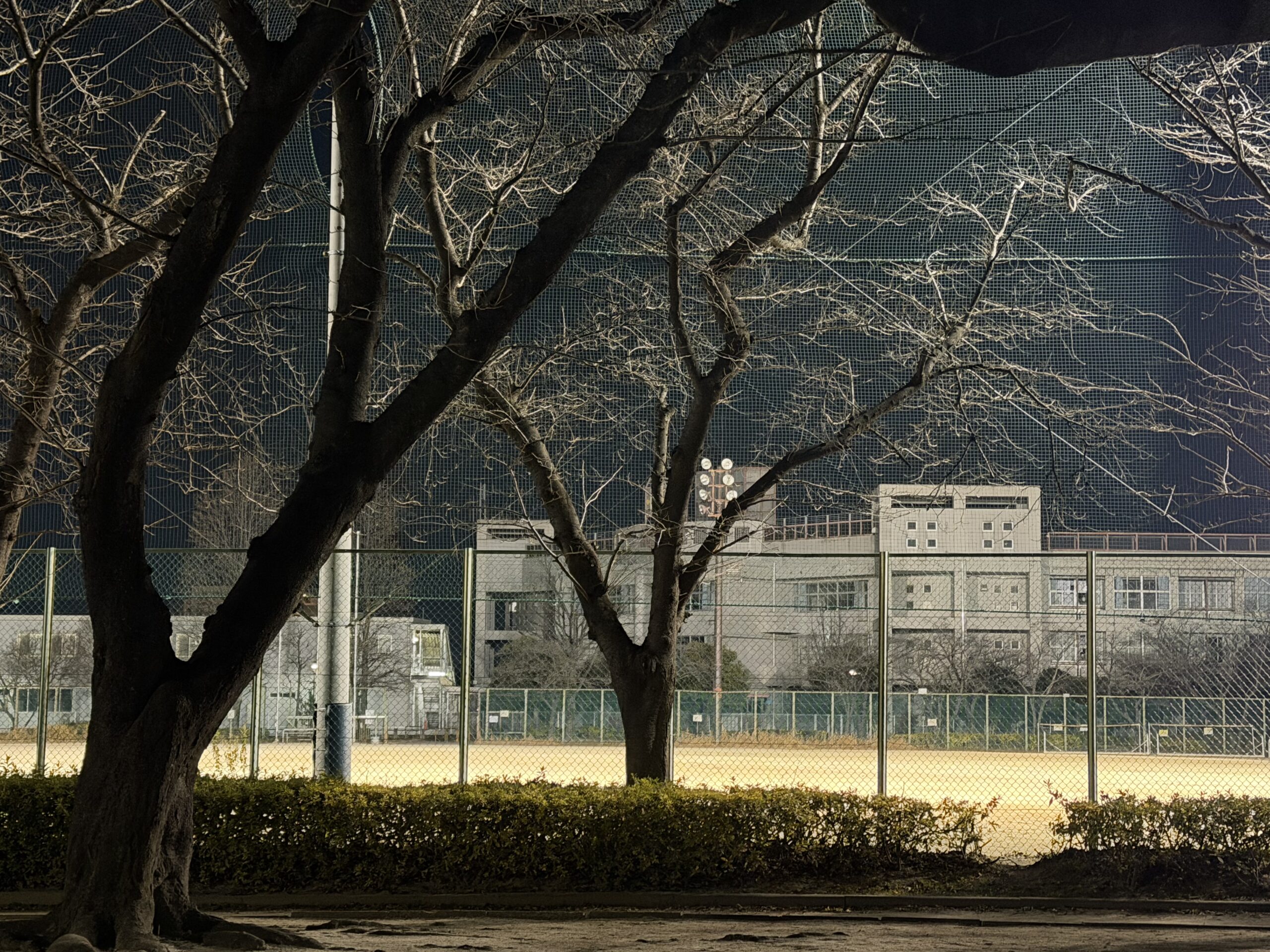 『 学びは光 』 -榎戸公園から戸塚北小学校- 未分類 X Facebook はてブ Pocket LINE コピー 2026.01.07 夜の榎戸公園 枝だけの木々が空を描く 静けさの奥で 心は前を向く 学びは光