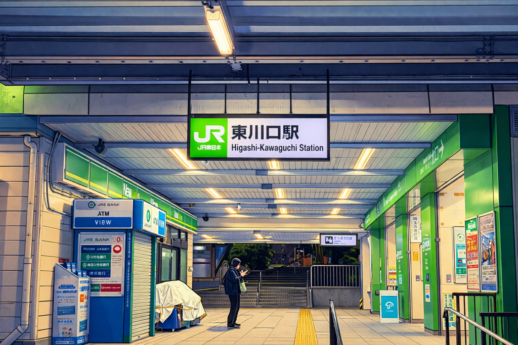 武蔵野線 東川口1時間に3本の電車 未分類 X Facebook はてブ Pocket LINE コピー 2026.01.06 浦和発 二十三時三十五分改札の向こうを 何度も見る足音ひとつに 胸が揺れ時計の針だけが 正確で待つという時間が 夜を深くする